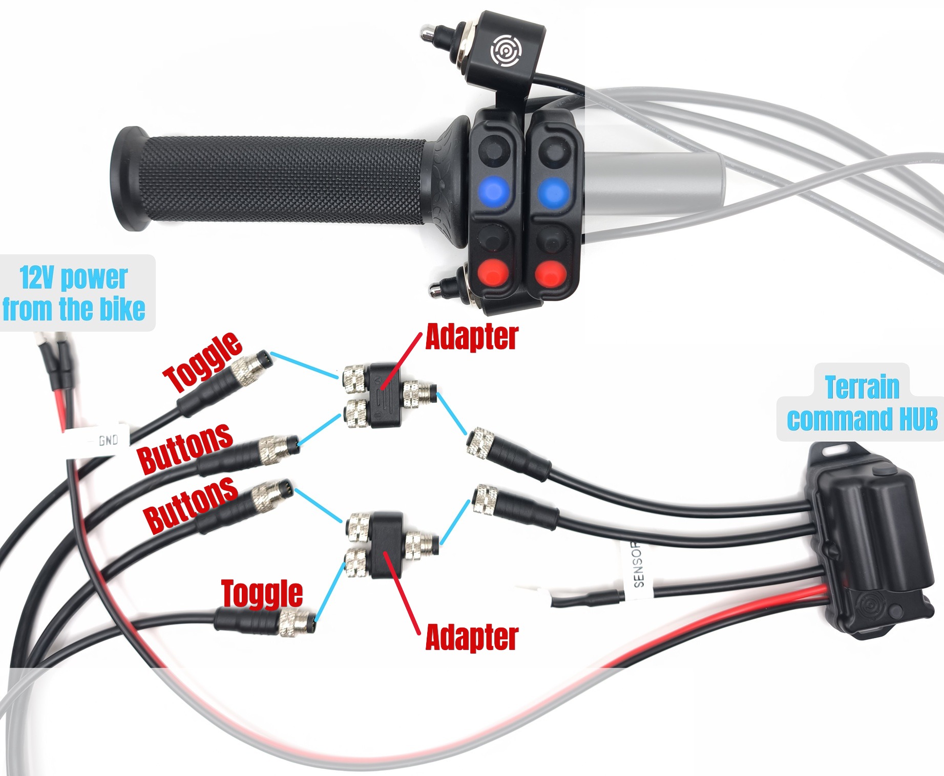 Now that we have the Terrain Commadn HUB powered and the handlebar controls installed, it is time to connect it together.