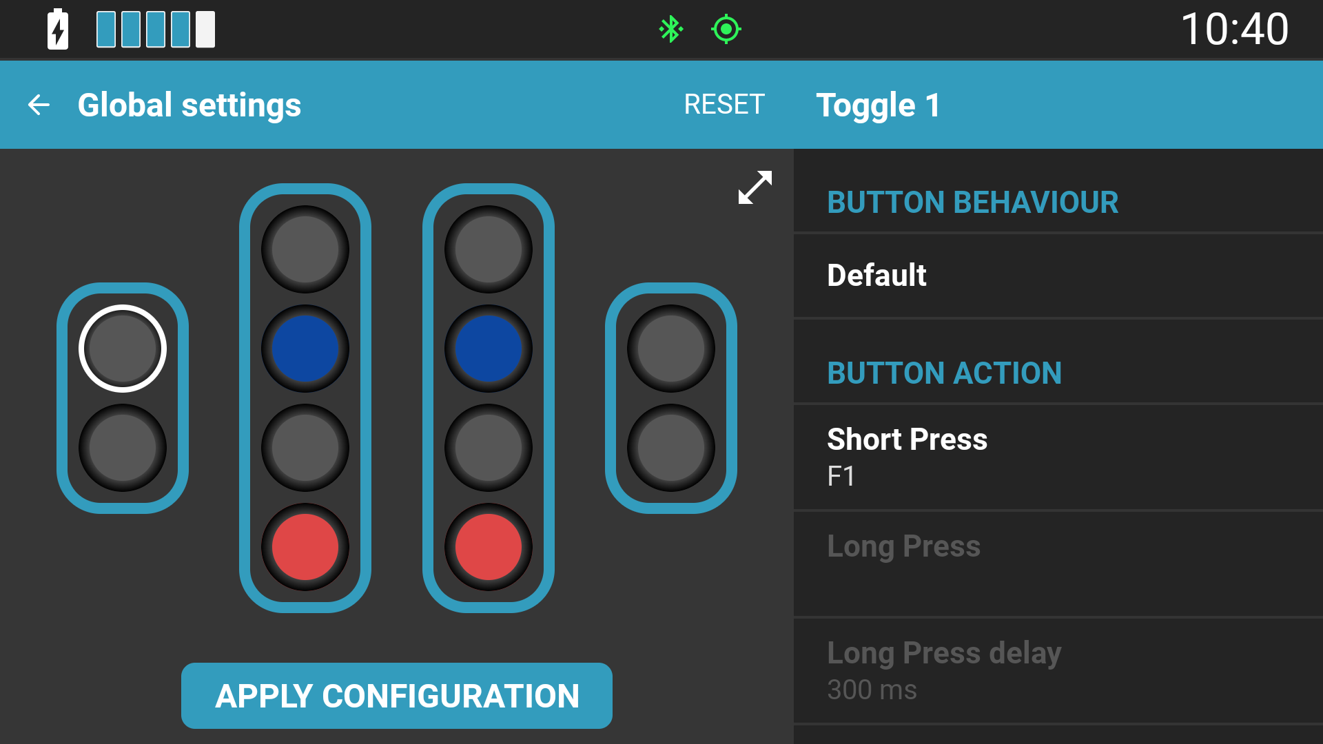 When the connection is estabilished, it is time to configure your individual buttons in the NGH app.