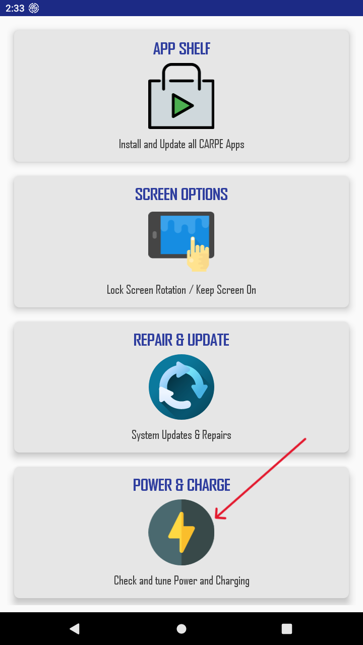 7.11. CARPE Manager app will automatically cycle the battery between 60-80% when charging 210px210pxvia USB wall charger, Holder and M8 charging cable. It will take in consideration your battery level, temperature, calibration accuracy, system load input current and screen brightness to adjust the charging in more than 40 possible combinations. Under certain conditions charging to 100% will be automatically allowed by the charging algorithms, such as in case the battery level indicator needs calibration (see Section 7.14).