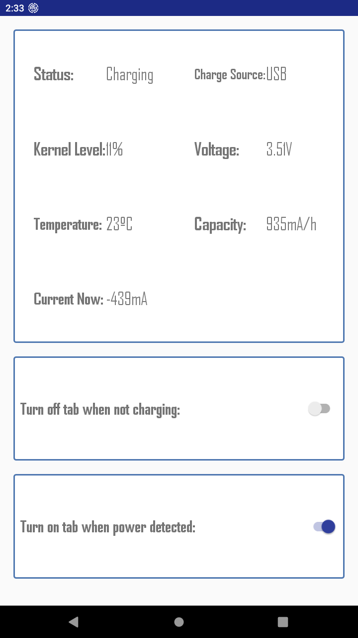 7.15. Real battery level can be verified in the Manager app - Power&Charge (refer to Section 7.11) or on the System pull down menu: